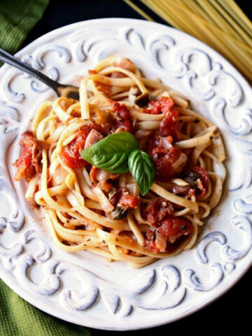 I love pasta and this linguine is calling my name. Your prosciutto tomato sauce sounds incredible. Pinning!