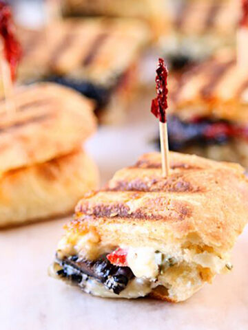 I love these little panini bites, and I’m crazy about mushrooms! They’re the perfect bite for a party, but I think I would go overboard and eat way more than one. haha Pinned!